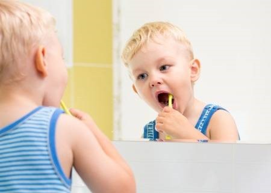 2.Τοποθετείστε ένα καθρέφτη σε ύψος κατάλληλο για το παιδί ώστε να μπορεί να λαμβάνει οπτική ανατροφοδότηση από το σημείο στο οποίο βουρτσίζει τα δόντια του